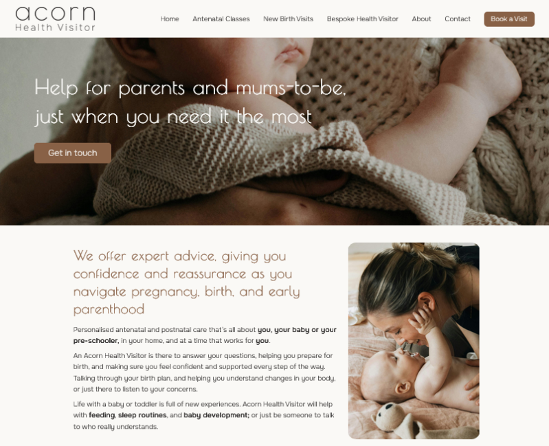 This website was built with for a fabulous lady with 40 years experience working with mums and babies. The branding was created by the Elite In a week branding specialist Natalie Murray